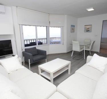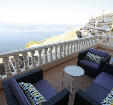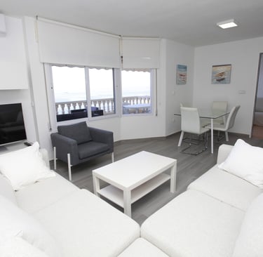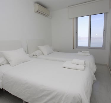 Descubre las impresionantes vistas y comodidades de este dúplex de dos plantas en residencial con piscina comunitaria, que cuenta con aire acondicionado en todas las habitaciones, WiFi gratuito, Smart TV, cocina equipada, salón luminoso, 3 dormitorios con capacidad para 6 personas en una cama de matrimonio y 4 camas individuales, 1 baño ensuite, 1 WC con ducha, 1 WC invitados en planta baja y terraza con vistas al mar. Lavadero independiente con lavadora. Se proporcionan toallas y sábanas. Totalmente reformado.